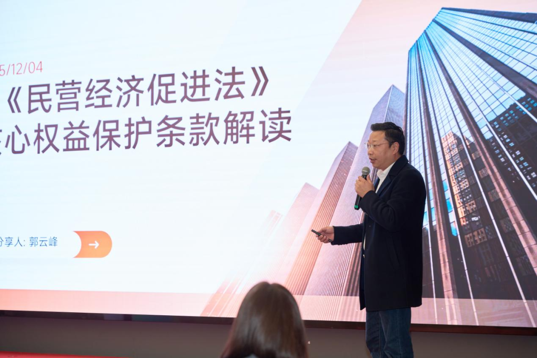 四川协筑律师事务所主任郭云峰结合实际案例,从立法背景及意义等六大板块,对《民营经济促进法》主要条款进行全面解读。大华(四川)税务师事务所陈雅维结合详实的经典案例,就政策法规、核心影响、核心功能、监管方向、监管目标、国内新增税务风险点及应对策略,对全面税务合规形势下企业经营风险进行了综合解析。弗瑞乔(成都)股权投资有限公司总经理蔡光荥深入浅出地对中国企业纳斯达克上市问题进行解析。